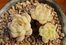 阿尔巴白月影是景天科、拟石莲花属的多年生植物、多肉植物,植株小型,叶片在阳光充足且具一定温差的适宜环境下呈通透的白色。在园艺育种中是优秀的亲本。全部>>