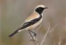 漠䳭是鹟科、䳭属小型鸟类,体长14-17厘米。雄鸟上体沙棕色,腰和尾上覆羽白色,两翅和尾黑色,尾基部白色,眼纹白色,眉纹以下整个脸和头侧以及颏、喉黑色,其余下体白色。雌鸟和雄鸟大致相似,但颏、喉白色,…全部>>