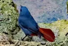 红尾水鸲是雀形目鹟科水鸲属鸟类,又称蓝石青儿、石燕、溪红尾鸲等。雄鸟主体均为暗灰蓝色,额基和眼先深灰黑色;翼暗褐色,外翈羽缘蓝灰色;虹膜褐色,喙黑色,脚肉褐色至黑褐色。雌鸟上体为略泛蓝的暗灰褐色,…全部>>
