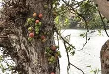 大果榕是桑科榕属的小乔木,株高可达10米;幼枝被柔毛;叶互生,宽卵状心形或近圆形;雄花无梗、匙形、花丝长,雌花生于雌株榕果内,子房白色;榕果簇生于树干基部或老茎短枝上、扁球形或陀螺形,…全部>>