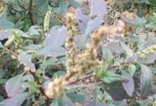 反枝苋是苋科苋属的一年生草本植物。株高达1米;茎密被柔毛;叶菱状卵形或椭圆状卵形,先端锐尖或尖凹,两面及边缘被柔毛,下面毛较密;穗状圆锥花序,顶生花穗较侧生者长;花被片长圆形或长圆状倒卵形,…全部>>