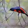灰喉山椒鸟:共有8个亚种。体长18-22厘米。雄鸟头部和背亮黑色,腰、尾上覆羽和下体朱红色,翅黑色具一大一小的两道朱红色翼斑。中央尾羽黑色,外侧尾羽基部黑色,端部红色。…全部>>