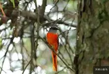 灰喉山椒鸟:共有8个亚种。体长18-22厘米。雄鸟头部和背亮黑色,腰、尾上覆羽和下体朱红色,翅黑色具一大一小的两道朱红色翼斑。中央尾羽黑色,外侧尾羽基部黑色,端部红色。…全部>>