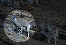 岩羊是偶蹄目牛科岩羊属哺乳动物。颜色与岩石相像,两性皆具角,雄羊角大而弯曲,角外表具不明显的横棱且体壮实,雌羊角短小;头较小,眼大,耳小,颏下无须;体背面为棕灰或石板灰色略有蓝色反光,…全部>>