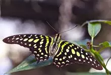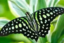 青带凤蝶Graphium sarpedon ,又名青凤蝶,是最普遍的中型凤蝶,飞行速度很快。青带凤蝶的翅膀中央有许多浅蓝色的斑点,很整齐地排列成一条直线。这些斑点由上而下逐渐变大,就像一条青色的带子。全部>>