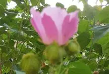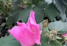 木芙蓉,锦葵科木槿属落叶灌木或小乔木。小枝上有细绒毛;叶片为卵状心形,托叶为披针形,常早落;花单生,花萼为钟形,花冠初为白色或淡红色,后逐渐变为深红色;果实为扁球形,有淡黄色的毛附着。花期8到10月。…全部>>