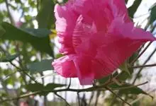 海滨木槿是锦葵科木槿属植物,落叶小乔木,株高3-5米,胸径20厘米,扁球形树冠,枝叶繁盛。厚纸质单叶互生,扁圆形、倒卵形或宽倒卵形,先端钝近平,具短突尖,基部圆形或浅心形,叶缘中上部具细圆齿,…全部>>