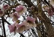 白花泡桐 Hemsl.)别名大果泡桐、通心条、饭桐子、泡桐等,为泡桐科泡桐属的乔木。其树冠圆锥形,树皮灰褐色,幼枝被黄褐色星状绒毛;叶片长卵状心脏形,有时为卵状心脏形,新枝上的叶下有星毛及腺,…全部>>