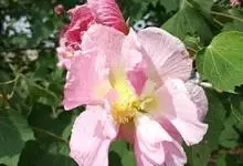 木芙蓉,锦葵科木槿属落叶灌木或小乔木。小枝上有细绒毛;叶片为卵状心形,托叶为披针形,常早落;花单生,花萼为钟形,花冠初为白色或淡红色,后逐渐变为深红色;果实为扁球形,有淡黄色的毛附着。花期8到10月。…全部>>