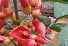 翅果刺桐 Merr.)是豆科,刺桐属乔木,高12-15米,具粗壮的刺。羽状复叶具3小叶,小叶膜质,卵状三角形,先端短渐尖,基部圆或宽楔形,两面无毛;总状花序长7-10厘米,有褐色绒毛;花红色,花萼钟状,…全部>>