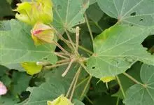 海滨木槿是锦葵科木槿属植物,落叶小乔木,株高3-5米,胸径20厘米,扁球形树冠,枝叶繁盛。厚纸质单叶互生,扁圆形、倒卵形或宽倒卵形,先端钝近平,具短突尖,基部圆形或浅心形,叶缘中上部具细圆齿,…全部>>