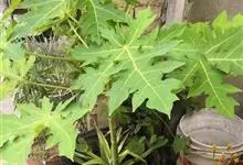 番木瓜,番木瓜科番木瓜属的常绿软木质小乔木,高达10米,具有乳汁;茎不分枝或有时于损伤处分枝;叶大且聚生于茎顶,近似盾形,叶柄中空;花单性或两性,有些品种雄株偶尔生两性花或雌花,…全部>>