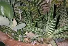 翠花掌是百合科、芦荟属植物。多年生肉质植物。株高20~30厘米具短茎,叶片三角剑形,肥厚多肉。表面下凹呈“V”形。叶长约12厘米,宽3-5厘米,有横向排列不规则的银白色或灰白色斑纹。松散的总状花序,…全部>>