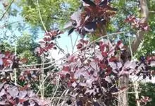 紫锦木是大戟科、大戟属的常绿乔木。叶圆卵形,主脉于两面明显,侧脉数对,边缘全缘,两面红色;花序生于二歧分枝的顶端,总苞阔钟状,裂片呈三角形,边缘具毛,腺体深绿色呈半圆形,…全部>>