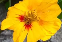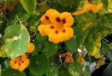 旱金莲是旱金莲科旱金莲属蔓生一年生草本植物。叶互生,叶柄向上扭曲,盾状,叶圆形,具波状浅缺刻,下面疏被毛或有乳点;花黄、紫、桔红或杂色,花托杯状,花瓣为圆形,边缘具缺刻;果实为扁球形;花果期6-10月,…全部>>