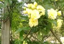 黄木香花 Rehd.)是蔷薇科、蔷薇属植物,为木香花的变型品种,攀缘小灌木,高可达6米。小叶3-5枚,稀7枚,小叶片椭圆形或长圆状披针形,先端急尖或稍钝,基部近圆形或宽楔形,边缘有紧贴细锯齿。花小型,…全部>>