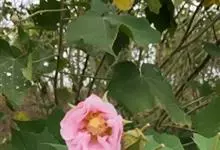 木芙蓉,锦葵科木槿属落叶灌木或小乔木。小枝上有细绒毛;叶片为卵状心形,托叶为披针形,常早落;花单生,花萼为钟形,花冠初为白色或淡红色,后逐渐变为深红色;果实为扁球形,有淡黄色的毛附着。花期8到10月。…全部>>