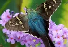 青带凤蝶Graphium sarpedon ,又名青凤蝶,是最普遍的中型凤蝶,飞行速度很快。青带凤蝶的翅膀中央有许多浅蓝色的斑点,很整齐地排列成一条直线。这些斑点由上而下逐渐变大,就像一条青色的带子。全部>>