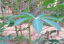 木薯,为大戟科木薯属的一种直立灌木,又名木番薯、树薯。木薯高1.5-3米;块根圆柱状。叶纸质,轮廓近圆形;裂片倒披针形至狭椭圆形;托叶三角状披针形。圆锥花序顶生或腋生,花萼带紫红色且有白粉霜。…全部>>