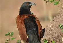 褐翅鸦鹃,是鹃形目鸦鹃科鸦鹃属的鸟类。褐翅鸦鹃的身体为黑色;头颈和胸带蓝紫色金属光泽并具黑亮的羽干纹,下胸至腹部泛金属绿光泽;两翼和肩部为棕栗色,外侧飞羽具暗色羽端,尾羽闪铜绿色光泽;虹膜赤红色,…全部>>