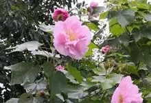 木芙蓉,锦葵科木槿属落叶灌木或小乔木。小枝上有细绒毛;叶片为卵状心形,托叶为披针形,常早落;花单生,花萼为钟形,花冠初为白色或淡红色,后逐渐变为深红色;果实为扁球形,有淡黄色的毛附着。花期8到10月。…全部>>