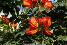火焰木,又名苞萼木、喷泉树,为紫葳科常绿大乔木,株高10—20米,叶为奇数羽状复叶,对生,较大,斜椭圆形,全缘,纸质,叶面深绿色。 全部>>