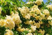 黄木香花 Rehd.)是蔷薇科、蔷薇属植物,为木香花的变型品种,攀缘小灌木,高可达6米。小叶3-5枚,稀7枚,小叶片椭圆形或长圆状披针形,先端急尖或稍钝,基部近圆形或宽楔形,边缘有紧贴细锯齿。花小型,…全部>>