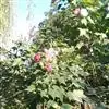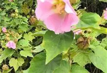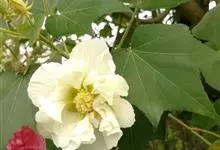 木芙蓉,锦葵科木槿属落叶灌木或小乔木。小枝上有细绒毛;叶片为卵状心形,托叶为披针形,常早落;花单生,花萼为钟形,花冠初为白色或淡红色,后逐渐变为深红色;果实为扁球形,有淡黄色的毛附着。花期8到10月。…全部>>