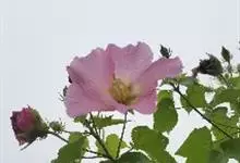 木芙蓉,锦葵科木槿属落叶灌木或小乔木。小枝上有细绒毛;叶片为卵状心形,托叶为披针形,常早落;花单生,花萼为钟形,花冠初为白色或淡红色,后逐渐变为深红色;果实为扁球形,有淡黄色的毛附着。花期8到10月。…全部>>