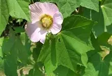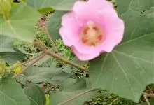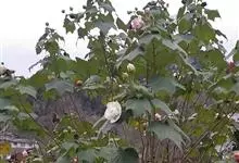 木芙蓉,锦葵科木槿属落叶灌木或小乔木。小枝上有细绒毛;叶片为卵状心形,托叶为披针形,常早落;花单生,花萼为钟形,花冠初为白色或淡红色,后逐渐变为深红色;果实为扁球形,有淡黄色的毛附着。花期8到10月。…全部>>