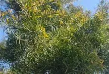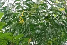 大叶相思是豆科,相思树属常绿乔木,枝条下垂,树皮平滑,灰白色;叶片镰状长圆形,两端渐狭,穗状花序,簇生于叶腋或枝顶;花橙黄色;花萼顶端浅齿裂;花瓣长圆形,荚果成熟时旋卷,果瓣木质,种子黑色,…全部>>