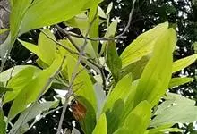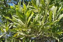 大叶相思是豆科,相思树属常绿乔木,枝条下垂,树皮平滑,灰白色;叶片镰状长圆形,两端渐狭,穗状花序,簇生于叶腋或枝顶;花橙黄色;花萼顶端浅齿裂;花瓣长圆形,荚果成熟时旋卷,果瓣木质,种子黑色,…全部>>