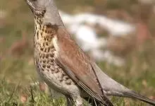 田鸫是鸫科、鸫属中型鸟类,体长25-28厘米,个体较一般鸫大。头顶、颈、腰淡蓝灰色,额和头顶有少许黑色纵纹,背栗褐色,两翅和尾黑褐色,眉纹白色。下体白色,喉、胸缀锈黄色具黑褐色纵纹,…全部>>