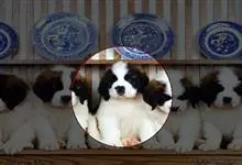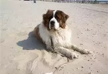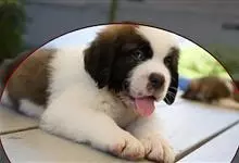 圣伯纳犬,别名巴里汉德,属于大型工作犬,肩高约65~90厘米,体重约50~90千克。圣伯纳犬身体强壮,被毛红褐色和白色相间,头圆而宽大。颈部强壮,胸宽深,背直。前肢长直,腕关节略前倾,后肢腿骨粗壮,…全部>>