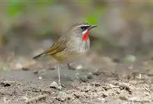 红点颏:是鸟纲、鹟科的鸣禽。又名西伯利亚歌鸲。体长14-17厘米,体重16-27克。雄鸟头部、上体主要为橄榄褐色。眉纹白色。颏部、喉部红色,周围有黑色狭纹。胸部灰色,腹部白色。雌鸟颏部、喉部不呈赤红色,…全部>>