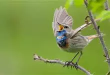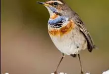 蓝点颏亦称“蓝喉歌鸲”,通称蓝靛颏儿。身体大小和麻雀相似,体长12-13厘米,体重17-18克。头部、上体主要为土褐色。眉纹白色。尾羽黑褐色,基部栗红色。颏部、喉部辉蓝色,下面有黑色横纹。下体白色。…全部>>