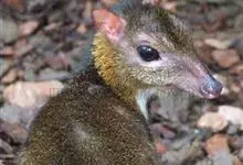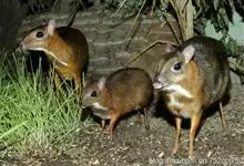 鼷鹿,别名小鼷鹿,共38个亚种。体形略比野兔大,体重1.3~2.0kg,体长420~630mm,肩高约200mm,是仅次于蹄兔目成员最小的有蹄类动物,也是鼷鹿科种体型最小的一种。面部尖长,无角,…全部>>