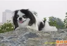 日本狆是极小型犬;被毛长而丰厚,不弯曲;毛色为白色底,带黑色或栗色斑块,斑块颜色越艳越好;斑块以在耳、身、面、尾根左右对称者为佳;头较大而圆,头骨平坦;吻短,鼻尖缩至两眼之间,几乎与眼同齐;眼大而凸出,…全部>>