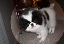 日本狆是极小型犬;被毛长而丰厚,不弯曲;毛色为白色底,带黑色或栗色斑块,斑块颜色越艳越好;斑块以在耳、身、面、尾根左右对称者为佳;头较大而圆,头骨平坦;吻短,鼻尖缩至两眼之间,几乎与眼同齐;眼大而凸出,…全部>>