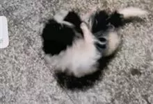 日本狆是极小型犬;被毛长而丰厚,不弯曲;毛色为白色底,带黑色或栗色斑块,斑块颜色越艳越好;斑块以在耳、身、面、尾根左右对称者为佳;头较大而圆,头骨平坦;吻短,鼻尖缩至两眼之间,几乎与眼同齐;眼大而凸出,…全部>>