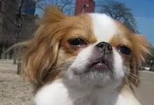 日本狆是极小型犬;被毛长而丰厚,不弯曲;毛色为白色底,带黑色或栗色斑块,斑块颜色越艳越好;斑块以在耳、身、面、尾根左右对称者为佳;头较大而圆,头骨平坦;吻短,鼻尖缩至两眼之间,几乎与眼同齐;眼大而凸出,…全部>>