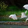 朱鹮是鹈形目鹮科朱鹮属的鸟类动物。其雄鸟通体白色,羽干及两翅与尾等均沾染粉红色;颈项上有很多长矛状羽毛,形成羽冠,耸立时非常夺目;嘴长而向下曲,呈黑色,先端朱红,脚的裸露部分亦呈亮红色。雌鸟羽色略同,…全部>>