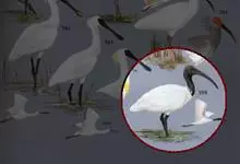圣鹮头、颈黑色,身体白色,初级和次级飞羽尖端黑色。喙长且厚、黑色下弯,跗蹠与趾黑色。下背部有大量黑色纱状装饰羽,翼下裸露皮肤红色,体侧有时带黄褐色。亚成鸟的头、颈有羽毛,斑驳黑色带有白色纵纹,…全部>>