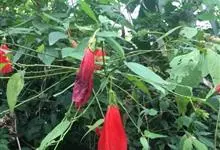垂花悬铃花是锦葵科、悬铃花属常绿小灌木,外型略似朱槿,但叶片较为狭长浓绿;高30-60厘米,叶片互生,卵形或卵状矩圆形,单叶,有时浅裂,叶形变化较多,叶面具星状毛。花红色,花通常单生于上部叶腋处,下垂,…全部>>