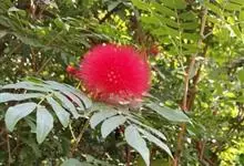 红粉扑花 Benth)是豆科,朱缨花属半落叶灌木。株高为可达2米,二回羽状复叶,具有1对羽片,而其小叶只有1对,其形状如肾脏形。红粉扑花在正午或晚上时,其叶子和花朵均会闭合起来。…全部>>
