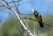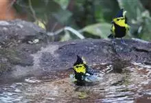 冕雀:共有4个亚种。体长20-21厘米,体重34-49克。具蓬松的黄色长型冠羽。雌鸟似雄鸟,但喉及胸深橄榄黄色,上体沾橄榄色。不会被误认的体大的黄色及黑色山雀。混群栖于原始林及次生林的林冠层,…全部>>