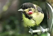 黄颊山雀是雀形目山雀科山雀属鸟类。雄鸟额、头顶和羽冠为具有光泽的黑色;额基、眼先、眉纹、脸颊和耳羽等头颈侧为鲜艳的明黄色;贯眼纹黑色;后颈亦具一黄斑;上体灰黄绿色,羽缘黑色;尾羽黑色具蓝灰色羽缘,…全部>>