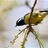 黄腹山雀是雀形目山雀科山雀属鸟类。虹膜褐色或暗褐色;嘴蓝黑色或灰蓝黑色;头、喉胸斑黑色,颊斑、颈后斑白色;上体蓝灰色,腰银白色;翼具两排白色点斑;下胸、腹鲜黄色;尾黑色,…全部>>