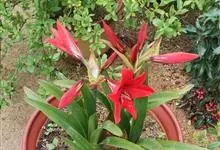 朱顶红 H. E. Moore),石蒜科属多年生草本植物,鳞茎近球形,并有匍匐枝;叶鲜绿色,带形;花茎中空,稍扁,具有白粉,圆筒状,花被裂片长圆形,顶端尖,红色,略带紫色;花丝红色,…全部>>