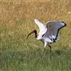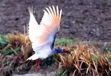 圣鹮头、颈黑色,身体白色,初级和次级飞羽尖端黑色。喙长且厚、黑色下弯,跗蹠与趾黑色。下背部有大量黑色纱状装饰羽,翼下裸露皮肤红色,体侧有时带黄褐色。亚成鸟的头、颈有羽毛,斑驳黑色带有白色纵纹,…全部>>